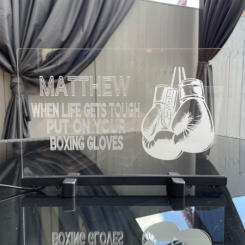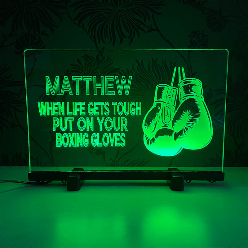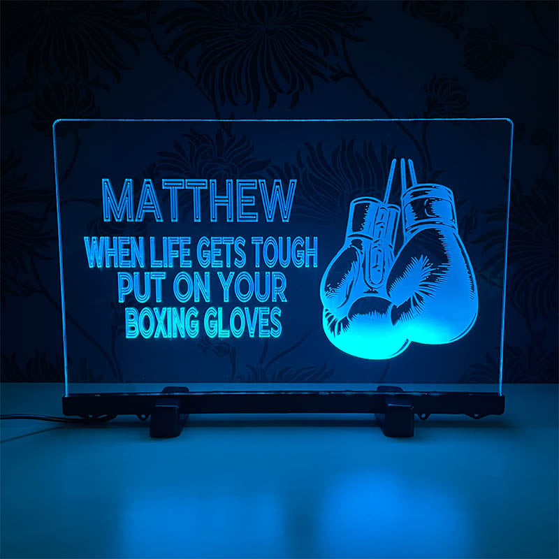 Elevate your gift-giving game and light up the lives of your young sports enthusiasts with our Personalised Ring Ready Boxer's Glow Sign.
